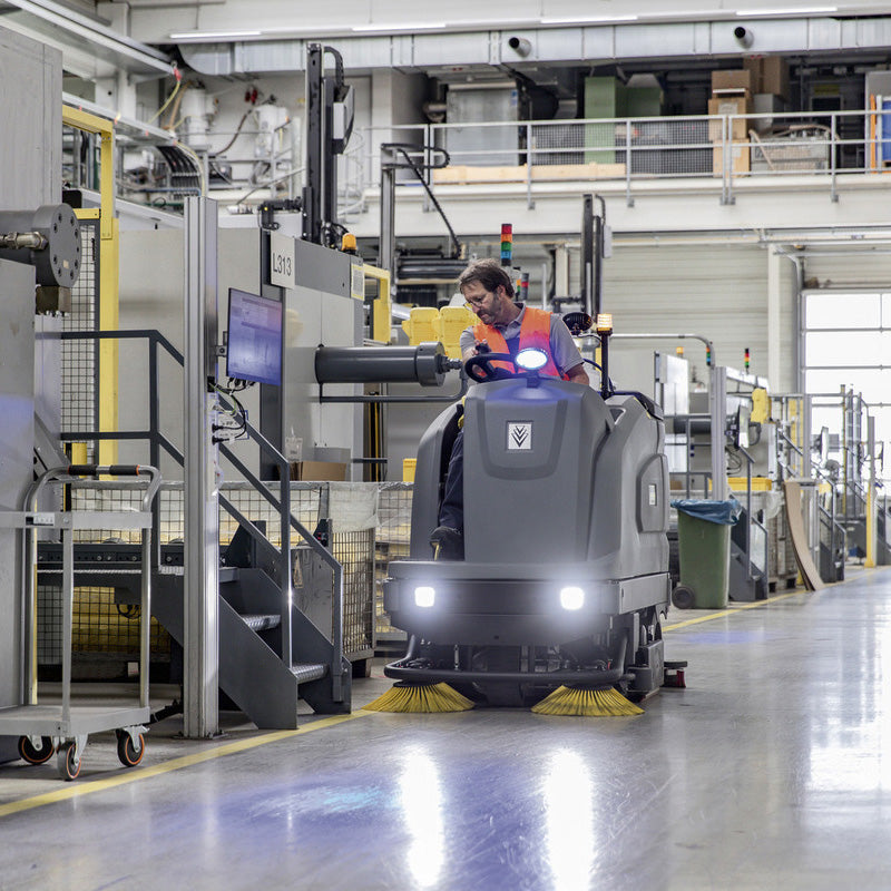 - Réservoirs de 260 litres pour l’eau propre et l’eau sale, adaptés au nettoyage intensif en milieu industriel.