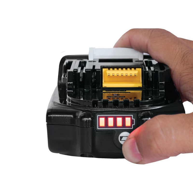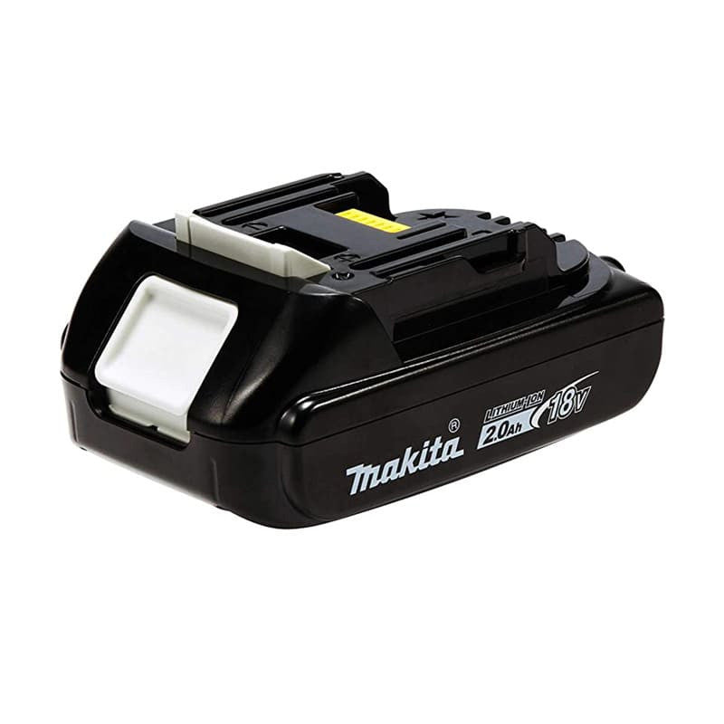 Batterie 18 V à technologie Li-Ion d'une capacité de 2.0 Ah, avec indicateur de charge pour les outils sans fil Makita alimentés sur batterie.