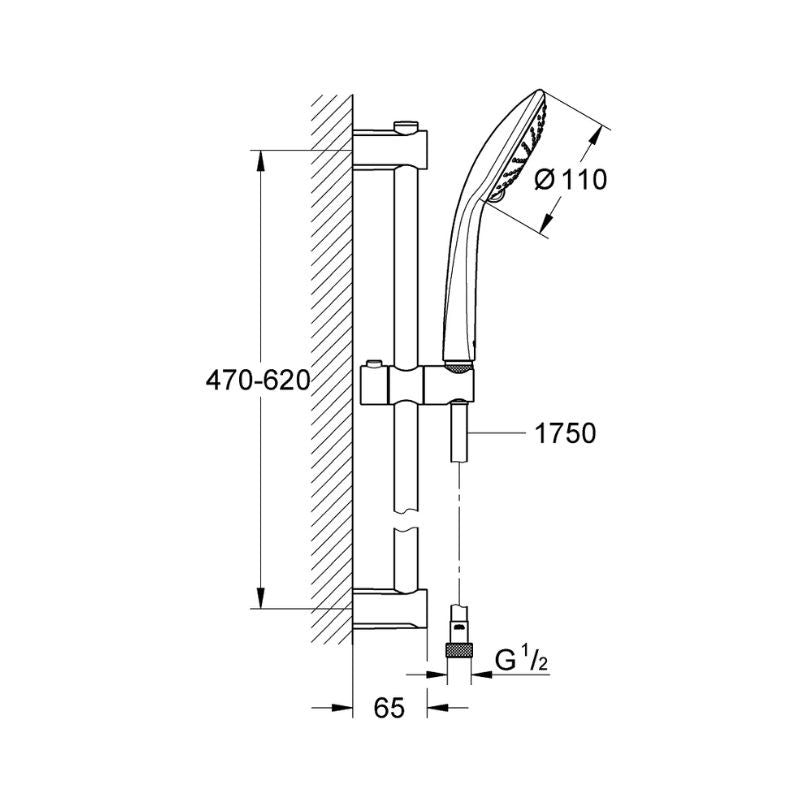 Caractéristiques techniques Ensemble VITALIO JOY GROHE 27333000 douchette 3 jets + barre 60 cm + flexible 175 cm - chrome