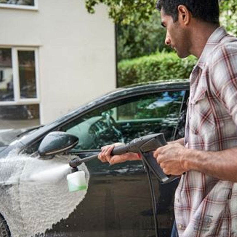 La pompe silencieuse améliore le confort d'utilisation, tandis que la poignée télescopique et les grandes roues facilitent le transport et le rangement. La buse haute pression avec réservoir de 450 ml garantit un lessivage rapide et efficace.