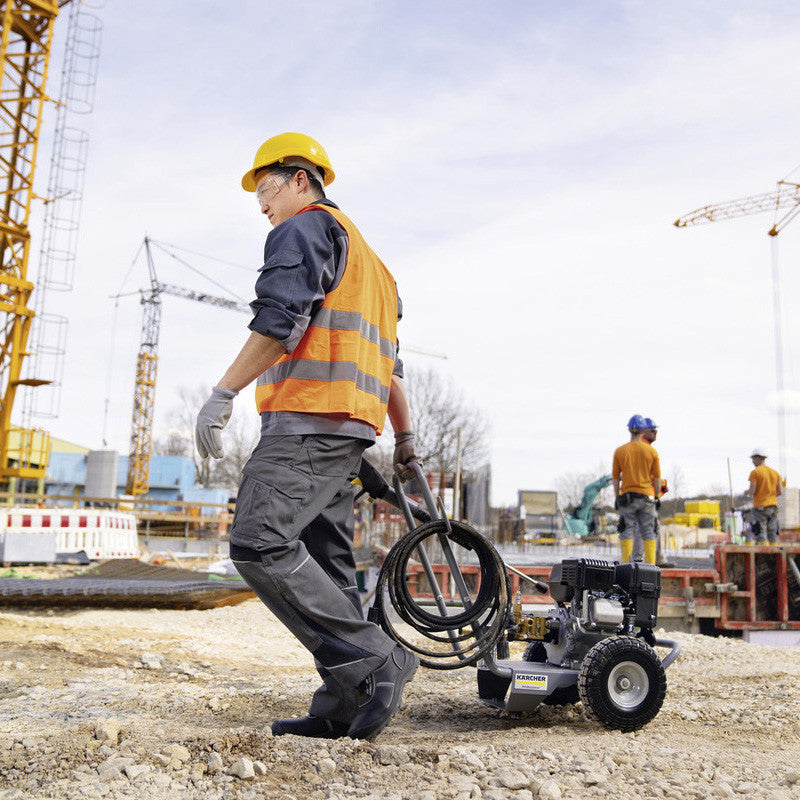 Avec une pression de service de 150 bars, une pompe à vilebrequin robuste et une quantité d'eau par heure allant jusqu'à 600 litres, il maîtrise les tâches de nettoyage les plus exigeantes sur les chantiers ou pour les municipalités.