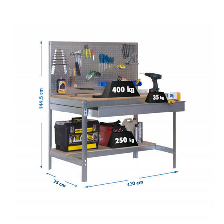 Etabli de travail 1200mm - SIMONRACK - BT2 BOX 1200 - 2 tablettes 1 tiroir et panneau percé