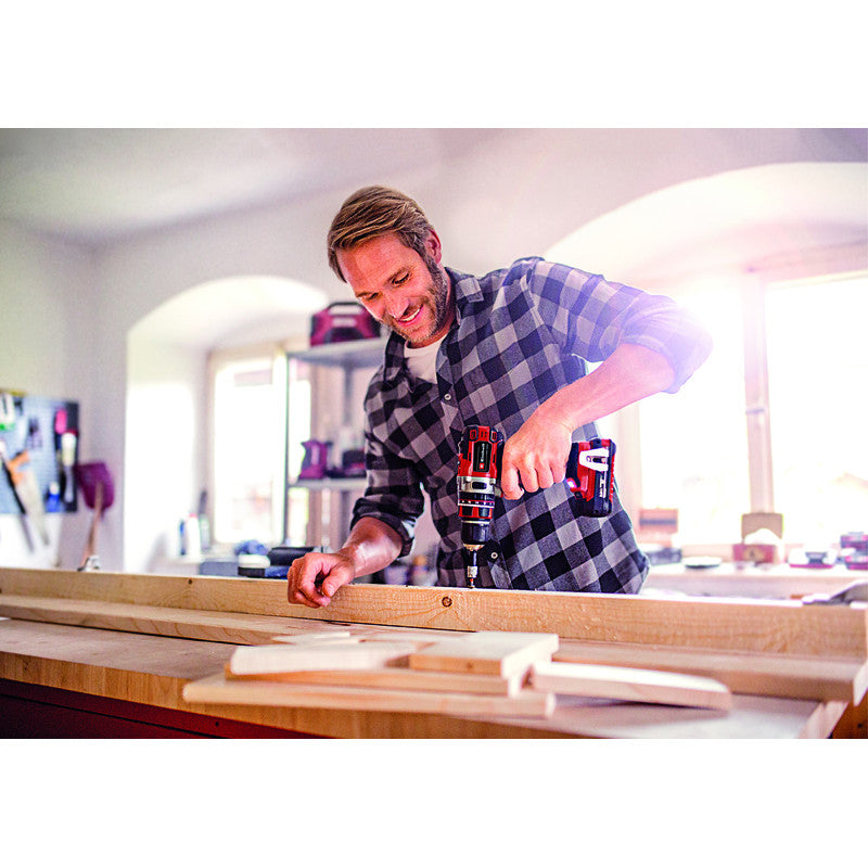 Appartenant à la puissante gamme Power X-Change, la visseuse-perceuse à percussion fonctionne avec les batteries lithium-ion très performantes de cette même gamme Einhell, qui sont toujours prêtes à l’emploi, sans le risque pourtant habituel d’autodécharge.