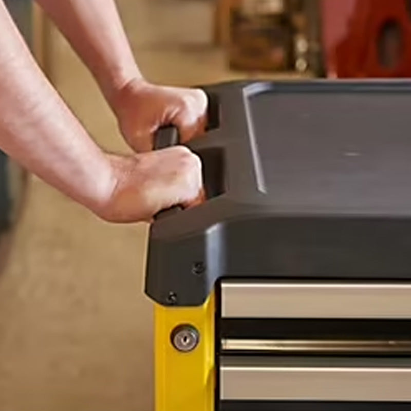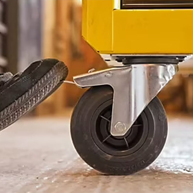 Son plateau supérieur robuste peut supporter jusqu’à 300 kg et intègre des emplacements pour tournevis. Grâce à ses poignées latérales et ses roulettes (dont une avec frein), cette servante est facile à déplacer tout en restant parfaitement stable une fois en place.