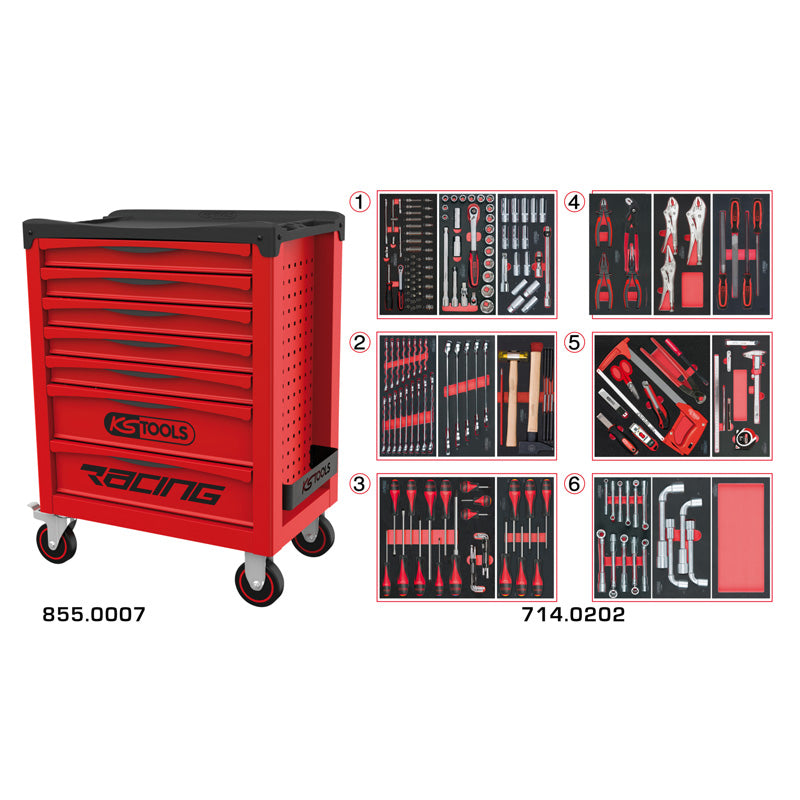 Servante RACING 7 tiroirs équipée de 202 outils - KS TOOLS - 855.7202