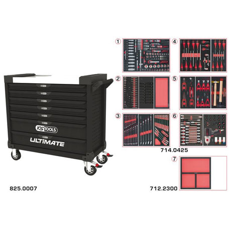 Servante ULTIMATE XL 7 tiroirs équipée de 428 outils - KS TOOLS - 825.7427