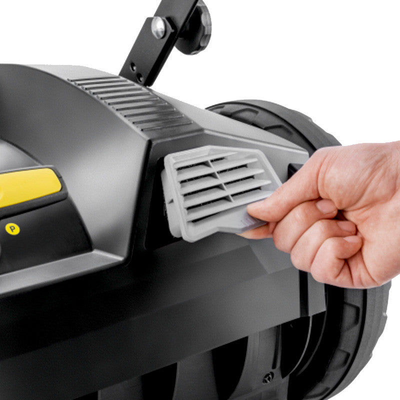 Permet un nettoyage sans poussières et sans effort des surfaces intérieures et extérieures grâce à un filtre à poussières, au rouleau-balai et au balai latéral.