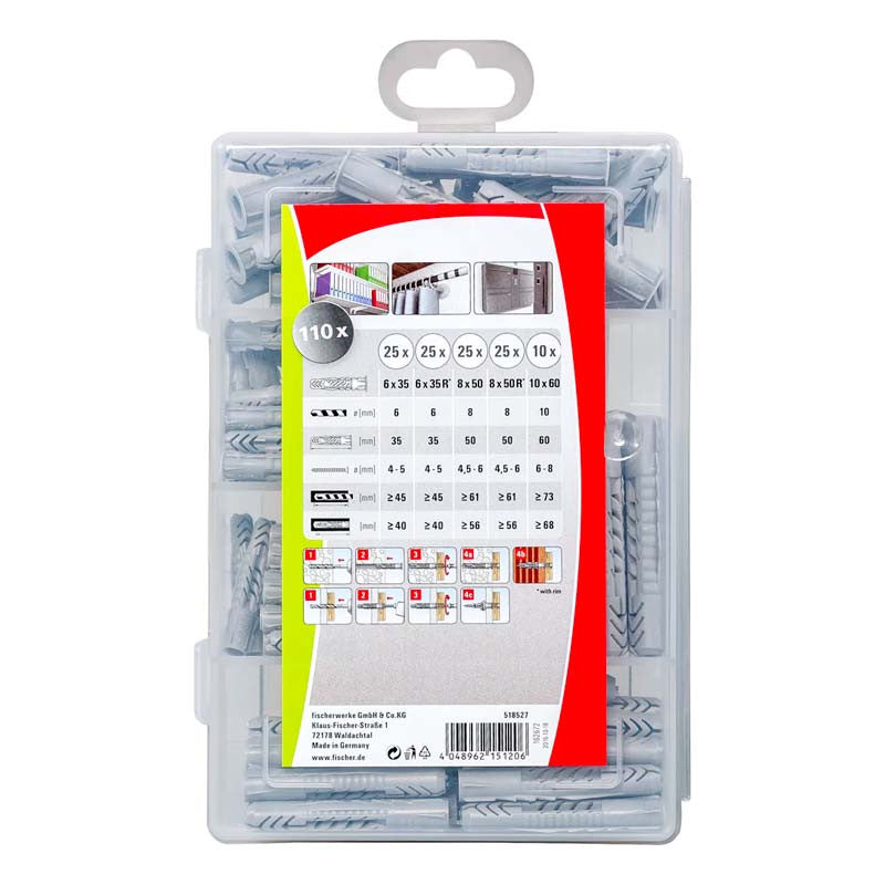 Boîte de 110 chevilles tous matériaux FISCHER 518527 nylon UX - Ø6-8-10 mm