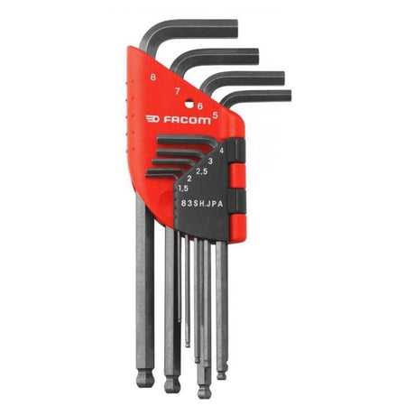 Jeu de 9 clés mâles coudées longues - tête sphérique - 6 pans FACOM 83SH.JP9APF 1,5 à 10 mm