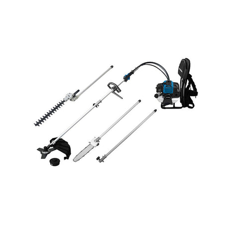Tête fil, lame herbe et lame scie incluses.