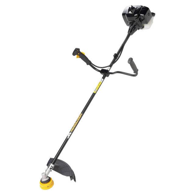 La débroussailleuse thermique McCulloch B43 BT est conçue pour le débroussaillage d’entretien mais également pour couper les herbes sauvages et la végétation ligneuse. Son carter combiné peut s’utiliser aussi bien avec une lame qu’avec du fil. La débroussailleuse thermique McCulloch B43 BT est dotée d’un guidon double réglable, d’un harnais double confort et d’une tête fil Tap’n’Go permettant un avancement rapide et précis du fil par simple tape au sol. Grâce à sa pompe d’amorçage la débroussailleuse thermique McCulloch B43 BT est facile à démarrer. Le filtre à air est accessible sans outil. Le réservoir d’huile est facile d’accès peut être rempli facilement et proprement. Cette débroussailleuse thermique est livrée en pack complet : 3 systèmes de coupe, harnais double confort, outils et bouteille de mélange. Largeur de coupe : 42 cm – Largeur de coupe (lame herbe) : 25,5 cm - Largeur de coupe (lame scie) : 25,5 cm