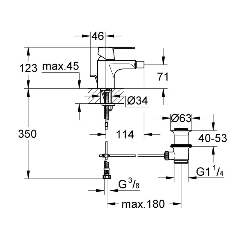 Caractéristiques techniques Mitigeur de bidet GET GROHE 32885000 monocommande - taille s - bec droit - chrome :