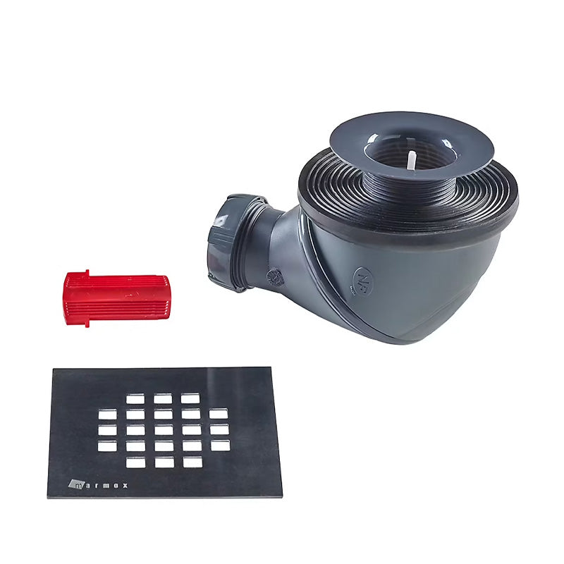 Produit professionnel / Garantie 10 ans / Pierre naturelle ardoise de 3 mm + âme en béton acrylique / Bords finis / Natte étanche pré-montée pour étanchéité périphérique / Antidérapant / Pierre naturelle traitée et antibactérienne / Résistant / Recoupable avec un disque diamant / Léger / Grille acier inox / Format de la grille 11,5 x 11,5 cm / Siphon NF à 360° vertical horizontal ou siphon ultra plat sur demande / Débit supérieur à 32 litres par minute / Diamètre de sortie: 40 mm / Nettoyable avec tous types de détergents / Rapide à poser / Pose à encastrer ou surélevé ou à poser