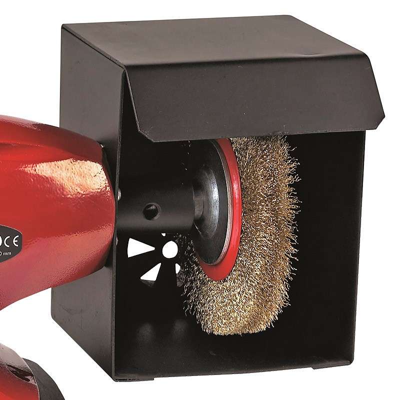 - Livré avec meules abrasives, protections anti-projections et brosse en acier.
